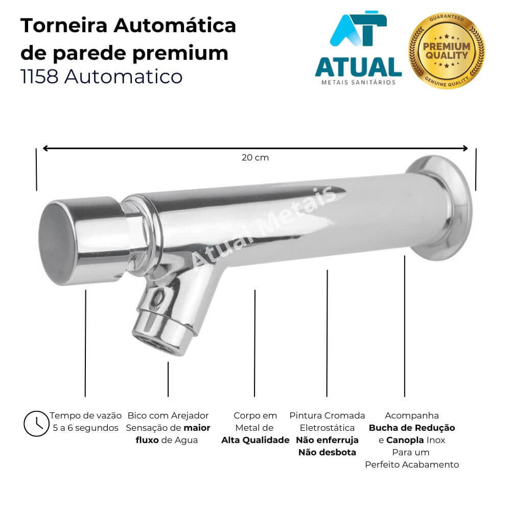 A hora de agir é agora! Adquira a Torneira Automática de Parede Premium da Atual Metais e junte-se à vanguarda da conservação ambiental, sem abrir mão do estilo e da eficiência. Sua casa e o planeta agradecem.